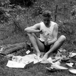 „Ich habe einen langen Waldspaziergang gemacht. Dort war es viel kühler; ich bin diese Hitze einfach nicht gewohnt. Ich habe dort einen Jungen getroffen, und wir sind in einem kühlen Teich geschwommen. Eigentlich ist es ein ganz kleiner See, aber er nannte ihn Teich. Er ist in meinem Alter, und wir gehen in dieselbe Klasse. Er heißt Ricky und wohnt gleich bei uns die Straße runter.“