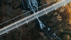 Sie blieben am Rand der Brücke stehen und blickten auf die weite Wildnis unter ihnen. Die Sonne ging unter und warf lange Schatten über die Landschaft.
