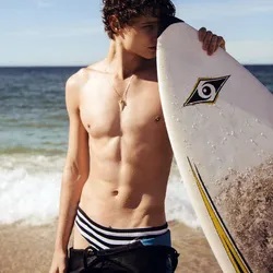 Er war ein paar hundert Meter vor mir und lief am Strand entlang in meine Richtung. Er hatte seidiges braunes Haar, das ihm in die Stirn fiel, und ein sehr attraktives Gesicht mit tiefblauen Augen, die meinen Blick fesselten. Seine Brust war völlig haarlos und seine Haut leicht gebräunt. Man konnte sehen, dass er auf sich achtete. Sein Körper verjüngte sich von den breiten, starken Schultern zu seiner schlanken Taille. Seine Brustmuskeln waren gut definiert, und obwohl er kein Sixpack hatte, wogte sein Bauch bei der Aussicht auf eines, das sich bald entwickeln würde. Ich konnte gerade noch die wenigen Strähnen dunklen, groben Haares um seinen Bauchnabel erkennen, die bis zum Bund seiner aquamarinblauen Badehose reichten. Seine Beine waren fest und muskulös, mit spärlichem dunklem Haar, das von den dicken Oberschenkeln bis zum Schritt dichter wurde. Hier verweilte mein Blick am längsten. Die Beule fesselte mich. Er dachte offensichtlich darüber nach, wie er sich in der Badehose positionieren sollte, denn ich konnte die Rundung seiner Hoden und die Länge seines seitlich ragenden Penis deutlich erkennen. Beim Gehen schwang sein Körper langsam hin und her, lockte mich verführerisch und verlockte mich, auf ihn zuzustürmen und den dünnen Stoff, der seinen Penis bedeckte, herunterzureißen. Ich spürte, wie mein eigener Penis bei dem Gedanken zuckte, diesen Mann aus seiner Gefangenschaft zu befreien und seinen Schaft mit einer Bewegung zu verschlingen.